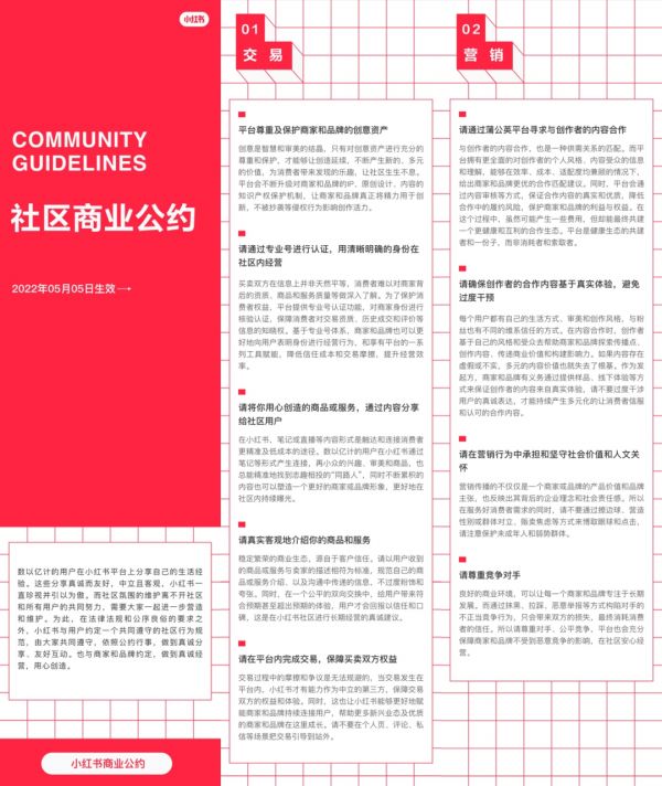小红书的《社区商业公约》便是一份平台与商家和品牌达成的约定。