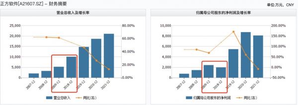 值得一提的是,即便是在2019年和2020年的高速增长之后,正方软件近十年的发展也难言“漂亮”,但公司总是能在申报IPO的报告期给出靓丽的增速。