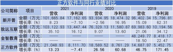 且其波动幅度显著高于同行,引来深交所的问询。尤其2019年和2020年,正方软件业绩增速大大高于同行的新开普(300248.SZ)、致远互联(688369.SH)和金智教育。