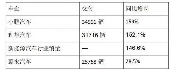 其次,理想汽车与同行新能源汽车厂商相比较,在交付量上,理想汽车与小鹏汽车交付量上均双双小幅超过行业平均零售增速,两家不相上下。