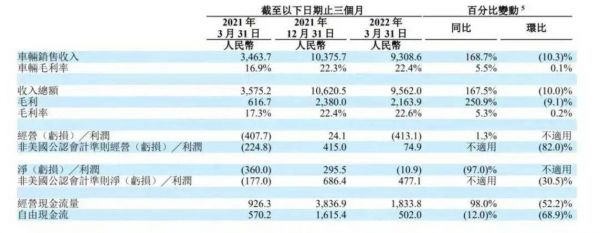 理想汽车2022年一季报净亏损为人民币0.11亿人民币,而去年同期净亏损人民币0.36亿人民币,亏损开始收窄,但是相较于2021年第四季度0.296亿人民币的浮盈而言,一季度再次转亏。
