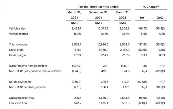 2022 年 5 月 10 日,理想汽车发布了截至 2022 年 3 月 31 日的第一季度财报。财报数据显示: