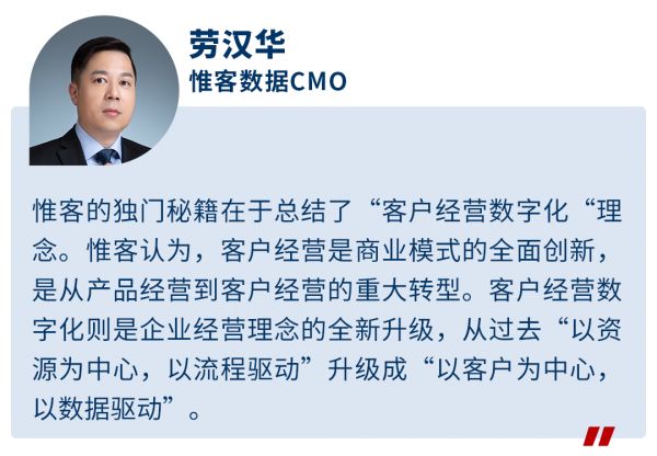 作为商业数据智能典型厂商之一,惟客数据在业内率先提出数字连接、数据智能、数字运营的数字化升级实践路径,并根据给线下企业做客户经营数字化的3年实践经验,发布了数字化客户经营系统“惟客云”,强调以客户为中心、以数据驱动,从服务于客户整个生命周期出发,来提升客户服务体验和经营效率。