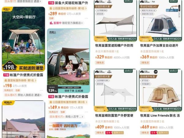 市界查阅其天猫旗舰店,帐篷类目以销量排序,前五名售价从329元到469元不等。而以淘宝整体销量排序,那么前排的露营帐篷价格可以下探至150元到300元之间。