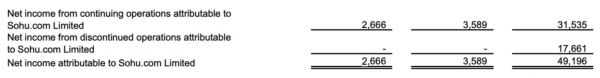 具体到本季度,“归属于搜狐公司的终止经营业务净利润”显示为“-”,这意味着在报表层面搜狐已经完全挥别搜狗,从“三驾马车”变为“双引擎”。
