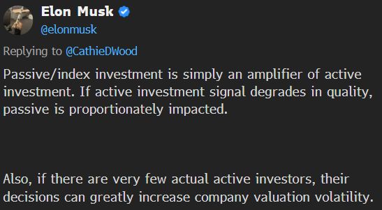 马斯克在twitter上对被动投资进行批评