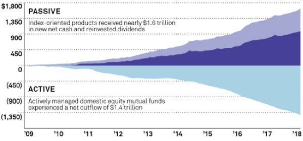 09-18年被动投资净流入1.6万亿美金,主动投资流出1.4万亿美金