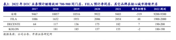 据了解,在2020年宣布DTC转型后,安踏门店数量就开始进入净闭店状态,预计2022年将继续保持该状态。