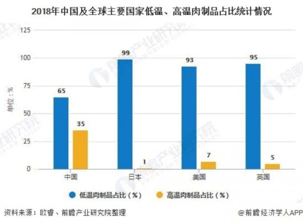 在发达国家,肉制品消费的低温化趋势已经有过充分验证。根据Euromonitor数据显示,2018年,日、美、英等国家的低温肉制品占肉制品消费高达95%以上,以健康饮食为代表的日本占比甚至高达99%。中商研究院数据显示,直至2019年,我国的低温肉制品产量达1155.5万吨,也仅仅占肉制品总产量的65.08%,因此仍有很大的提升空间。