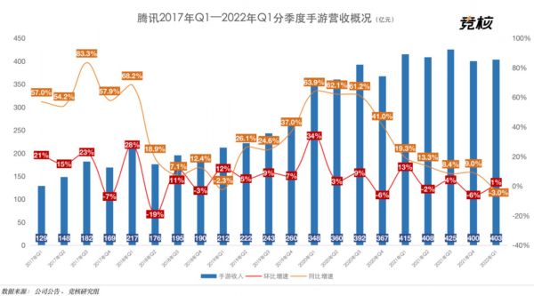 财报显示,2022年Q1,腾讯手机游戏增值服务收入总额(包括归属于社交网络业务的手机游戏收入)同比减少3%至人民币403亿元,个人电脑客户端游戏收入同比增长2%至人民币121亿元。