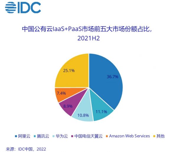 根据IDC日前发布的最新报告,去年下半年国内公有云市场规模同比增长43%至784.89亿元,阿里云以36.7%的占有率独占鳌头。在阿里云身后,腾讯云、华为云、天翼云和AWS占有率分别为11.1%、10.8%、8.9%和7.4%,四家相加才勉强和阿里云打个平手。
