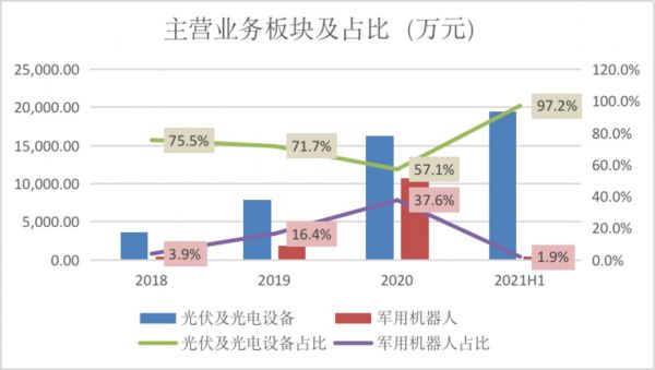公司主营业务主要分为两大部分,即光电侦察设备和军用机器人。2021年上半年,军用机器人业务板块占比大幅下降至1.9%,光电侦察设备占比直接提升至97.2%。公司表示,主营业务收入规模受最终用户军方采购计划的影响,公司主要产品实现的销售收入具有一定的波动性。