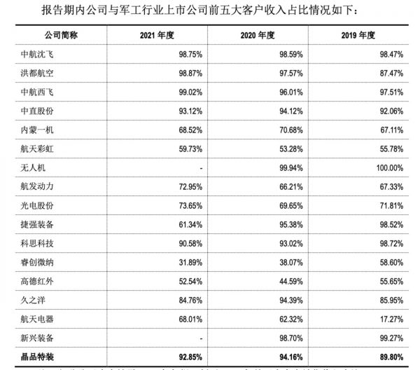 尽管如此,晶品特装的客户集中度还是高于大部分军工类企业。