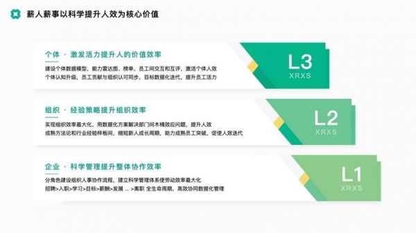 L2是组织的效率提升,主要解决两个问题,一是新人如何快速变为老人,二是怎样的薪酬/职级体系能够保证老人持续晋升,薪人薪事可以通过试岗以及体系诊断,帮助提升组织的效率。