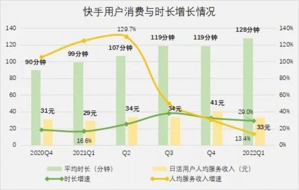 时长增长表明内容上的投入确实抓住用户注意力,而人均服务收入增长低迷则表明平台商业生态虽然还在增长,可明显看到有些后劲不足。光有时长、看不到人均服务收入增长,对于还处于亏损状态的快手而言,并非好事情。