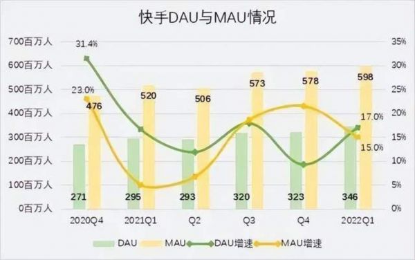 从平台日活用户数据来看,快手正在逐渐拉开与抖音之间的差距,根据快手近期发布的财报数据显示,快手一季度DAU为3.46亿,虽然同比增长了17%,但已经明显追不上抖音,根据此前字节跳动发布的统计数据,抖音目前的日活已经突破了6个亿。