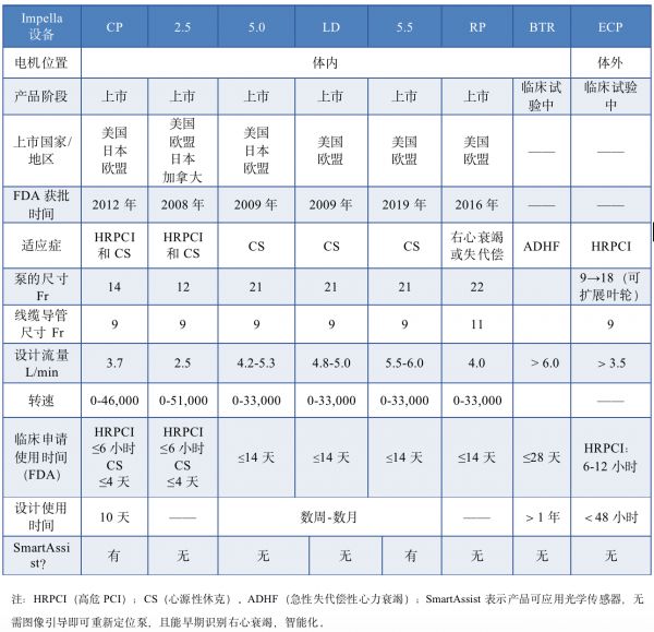 Impella系列产品参数对比