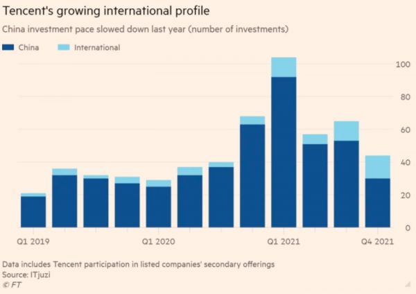 图2:腾讯在国内的投资较低。(图源:Financial Times)