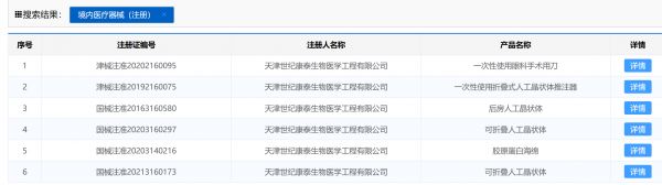 世纪康泰已获批的医疗器械,来源:NMPA