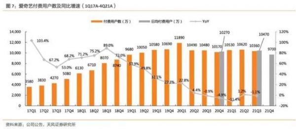 同样令人遗憾的是,爱奇艺的付费用户已经很长一段时间维持在1亿规模,没有增长,2021年Q4甚至降至9700万。