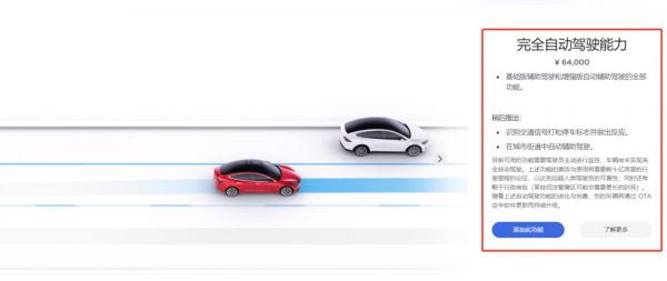 特斯拉FSD软件订阅价格(中国区域),截图自特斯拉官网