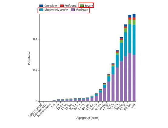 深受其苦的不只有贝多芬。2019年,据发表在《柳叶刀》上的“全球疾病负担分析”,听力障碍在全球伤残损失健康生命年的病因中排名第三,前两者是腰痛和偏头痛。这一直以来被认为是“隐形残疾”的听力障碍,人群数量也很广泛。2021年世卫组织发布的首份《世界听力报告》中指出,全球有15亿人患有某种程度的听力损失,其中约4.3亿人需要针对听力损失的康复服务。