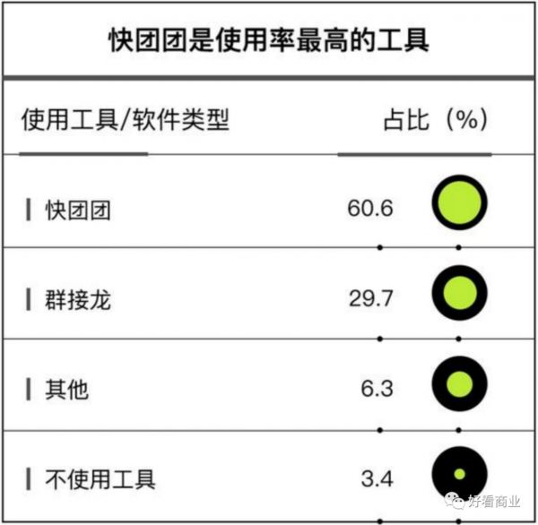 快团团堪称风靡程度最高的一个。据ShanghaiWOW的调研数据,快团团是团长人群中使用率最高的一个软件,占比超过60%。