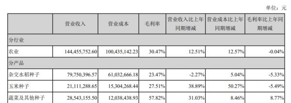然而,获奖没能拉动公司杂交水稻销售,年报显示,去年杂交水稻种子营收同比减少了2.27%,与前几年相比变化不大,并不好卖。
