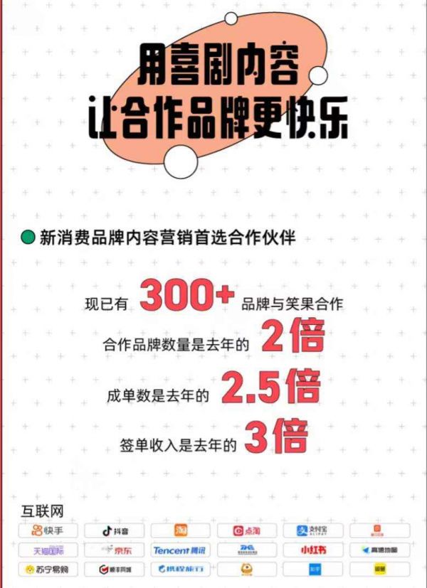 「笑果文化」的商业化业务是基于长视频业务逐步衍生出来的,现已形成了自有的商业化形态,用「笑果文化」的艺人、编剧以及内容产出等方式为为品牌提供各类内容营销服务。「笑果文化」的商业化业务是近两年增长较快的业务板块,在去年为笑果文化带来了百分之四十的收入。
