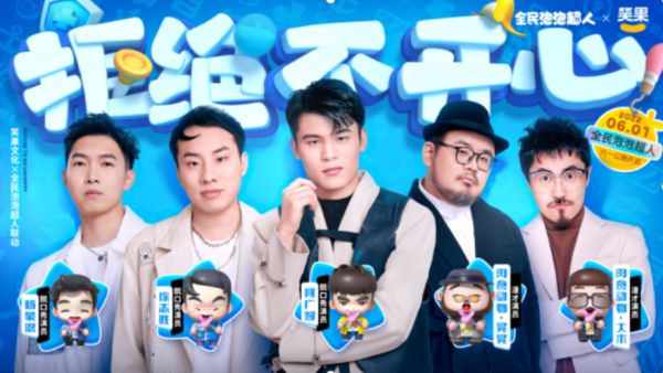 此次双方联动主题为“全网拒绝不开心”,作为全国知名的年轻态喜剧产业公司,「笑果文化」此次推出杨蒙恩、徐志胜、何广智、肉食动物(大木和晃晃)五位来自笑果星球的脱口秀演员与来自的哈林星球的“水泡”们一起跨次元联动。