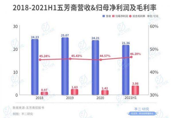 「不二研究」发现,五芳斋在新版招股书中更新了2021年上半年的业绩数据。