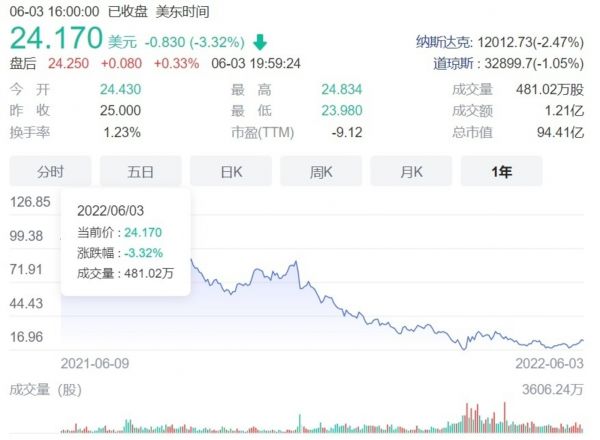 资本市场是烧钱的游戏,但这并不意味着,钱可以一直烧下去。在过去的很长时间里,B站一直面临如何盈利的疑问,二级市场也给了B站较为负面的判断。截至毒眸(ID:DomoreDumou)发稿前,B站股价从2021年2月8号历史高位的157.66美金/股跌至24.170美金/股。