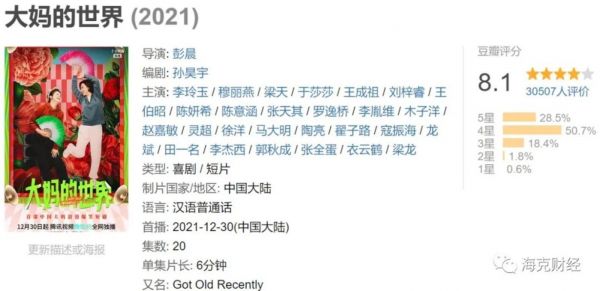 精品化以来,微短剧不乏流量与口碑双丰收的好剧。如2021年底上线,2022年初破圈的《大妈的世界》,共20集,单集6分钟,在豆瓣收获了8.1的高分。