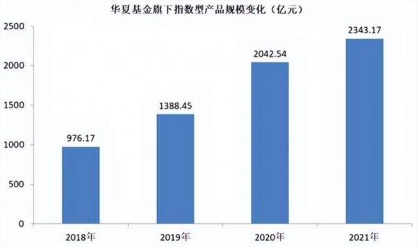 在李一梅的掌舵下,华夏基金旗下指数型产品规模,从2018年的976.17亿元增长至2021年的2343.17亿元,成为国内首家指数型产品规模突破2000亿元的公募机构。