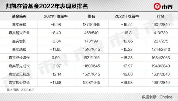 作为“嘉实一哥”的归凯,2016年3月开始管理的嘉实泰和年化回报12.81%,2022年初至今回撤21.64%。