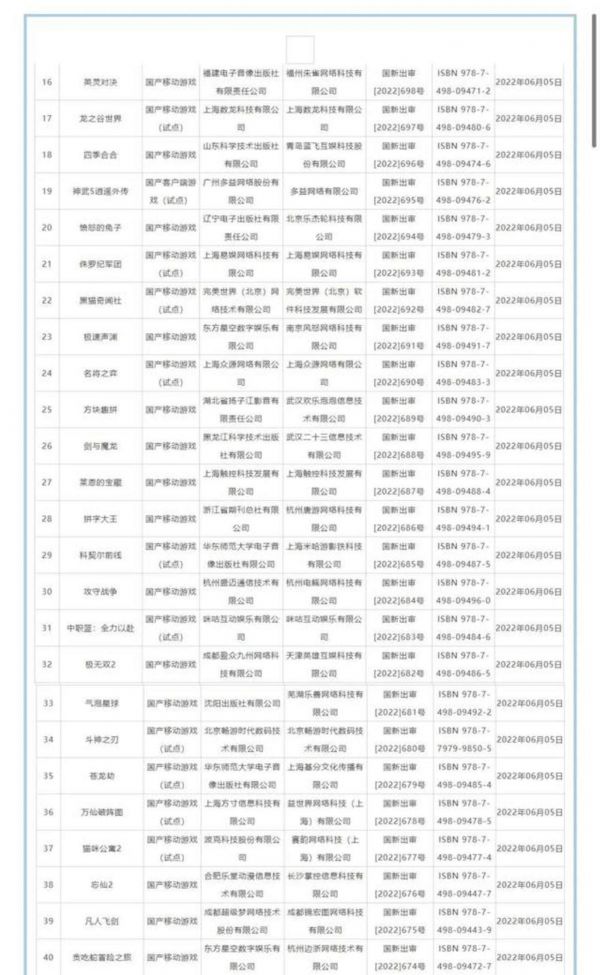 ▲图:新一批游戏版号(部分)