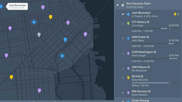 「Onfleet」提供了一个调度仪表板,能够优化配送路线、搜索实时配送状态。该平台将考虑时间、位置、容量和交通状况等因素,推荐最优路线,并且自动为驾驶员分配配送任务。