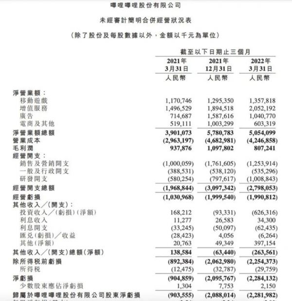 一季度,B站净亏损22.84亿元,同比扩大152%,经调整净亏损16.55亿元,同比扩大85.7%。