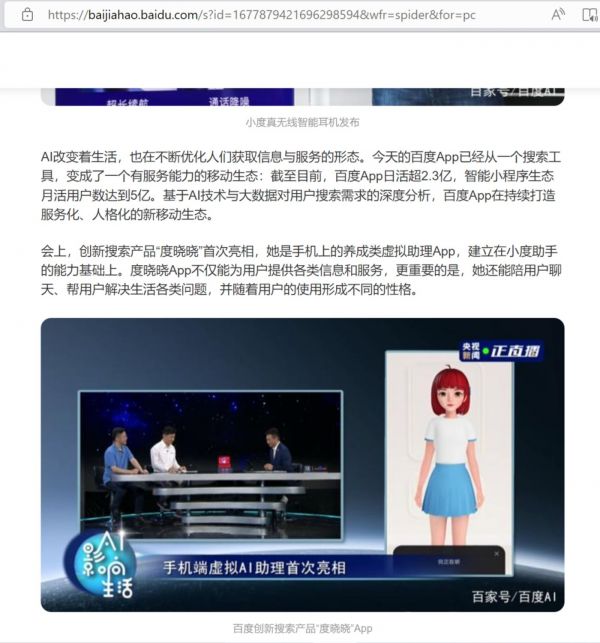 (2020年,作为虚拟助理的度晓晓初亮相)