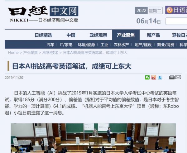 “机器人能否上东大”就是日本人工智能研究的一个长期项目,第一次参加“高考”的时间是2013年,得分387分(满分900),2015年得分511分,高于平均分数416分,整体效果可以概括为通过深度学习多年复读,AI取得了总分提升,但数学(理科)的偏差值与语文偏差值,仍然差距明显。