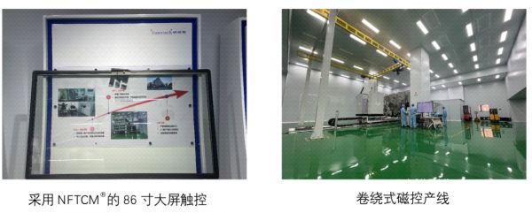 据悉,「纳诺特」首条1800mm卷绕式磁控溅射NFTCM®产线已于2022年3月建成并顺利完成试生产,量产的NFTCM®柔性透明导电膜光电特性、均匀性和耐候性达到了下游客户要求,已经实现了在86寸大屏触控、智能调光器件、透明加热器件和透明电磁屏蔽中的应用验证。