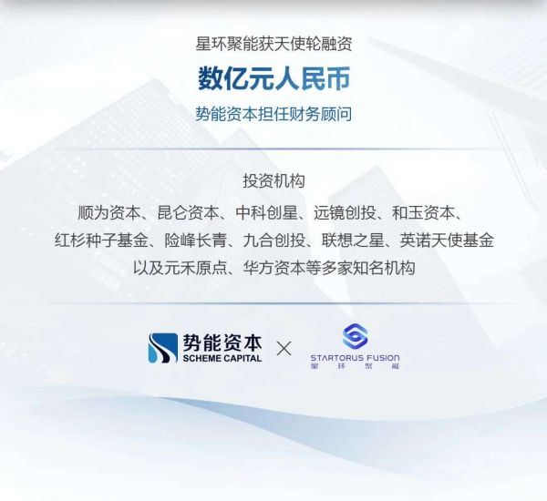 星环聚能完成数亿元天使轮融资,势能资本担任财务顾问 | 势能交易