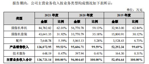 据其招股书表述,其搭建了几乎可满足所有场景的产品矩阵,业绩也开始持续走高。从营收结构上看,睿联称得上是标准的跨境品牌型公司,主要营收贡献集中于自研的Reolink家用视频监控摄像机及其套件的销售。2019年到2021年,主营业务毛利率分别为53.39%、60.34%和57.78%。其中,2021年毛利下滑主要来自于源材料市场涨价。