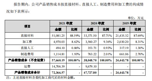 此外,由于3C品类的特殊性,其产品成本极度受限于上游原材料、芯片市场的供应情况。数据显示,其产品直接材料成本占据销售成本的88.5%,加之其产品几乎所有加工均来自于供应商外协生产,在产能上也有一定风险。