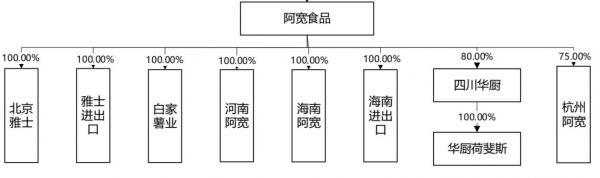 2016年,陈朝晖与川白食品共同出资设立阿宽有限(阿宽食品前身),其中陈朝晖出资950万元,股权占比95%。公司成立后,为了方便从事方便食品的研发、生产和销售,阿宽有限通过现金或无偿方式收购川白食品、李维兵、李兴举、李川拥有的与方便食品业务相关的资产和股权,并承接其生产经营相关的人员及业务资源。