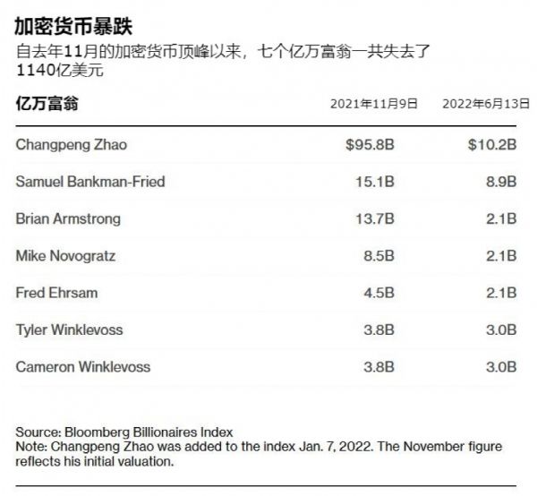 超级泡沫破灭的背后,是巨大财富的灰飞烟灭。曾经凭借着虚拟货币登顶富豪榜的币圈大佬们,财富正在急剧缩水。