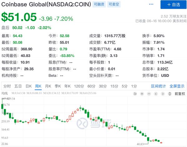 倾巢之下,无完卵。监管风暴与虚拟货币崩塌之下,各大虚拟货币交易平台的价值正在迅速蒸发,以美国最大的虚拟货币交易所Coinbase Global 为例,其最新股价相比IPO发行价累计暴跌幅度达到79.6%,总市值累计蒸发高达442亿美元(约合人民币2900亿元)。