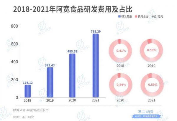 虽然阿宽食品拥有自己的工厂、独立的供应链和制造技术,并已将差异化作为破局之道,但在研发上,阿宽食品并没有给予足够的重视。