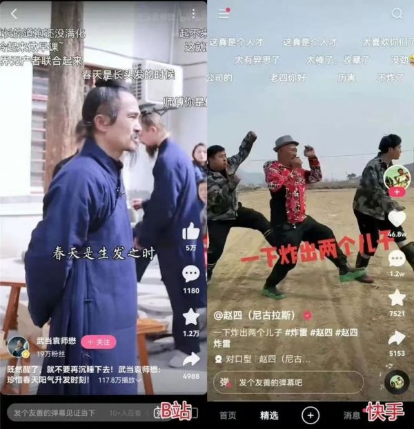 内容形式的变更基于内容本身的变化,在B站,虽然还有不少用户对竖屏短视频抱有敌意,但不少来自抖快的博主轻松获得百万粉丝,则证明了另一批用户的喜好。而在快手,一个新生用户若初次打开快手,他很难见到那些原生的土味,反而是更极致的“抖音”。