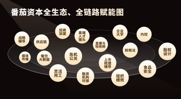 由于一直扎根餐饮行业,所涉及的业务又包括供应链平台、培训、咨询、人才、投资、孵化等不同板块,所以在番茄的整个版图里,所有的资源、信息其实是可以互相借力的,这样也形成了一个庞大同时又是流动的信息和资源聚合平台。